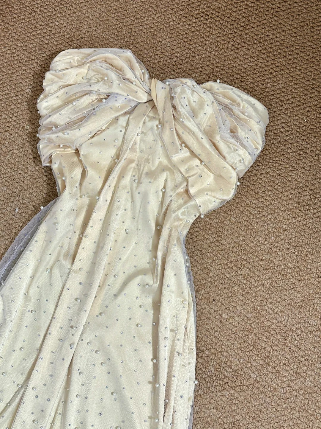 Eilbestellung: Innerhalb von 15 Werktagen fügen Sie bitte 30,00 $ hinzu. Diese Kosten werden für den vorherigen Versand und für Näherinnen gedeckt, die gerne zusätzliche Zeit investieren möchten, um dieses Kleid fertigzustellen.