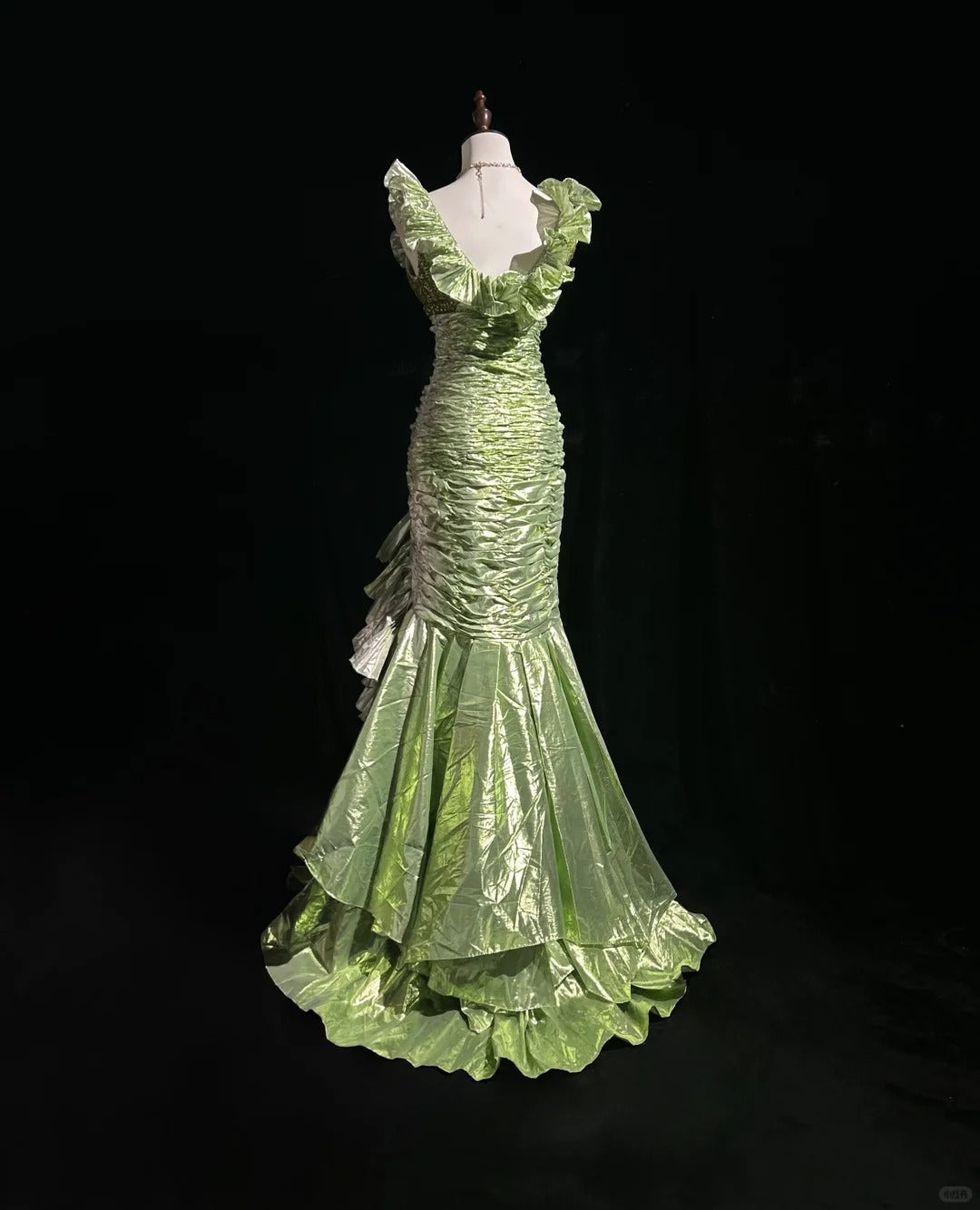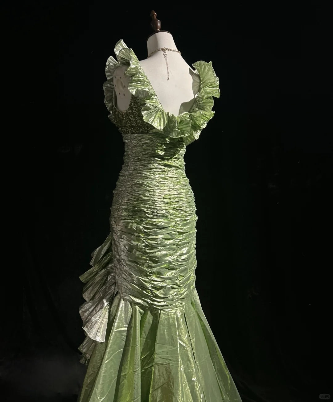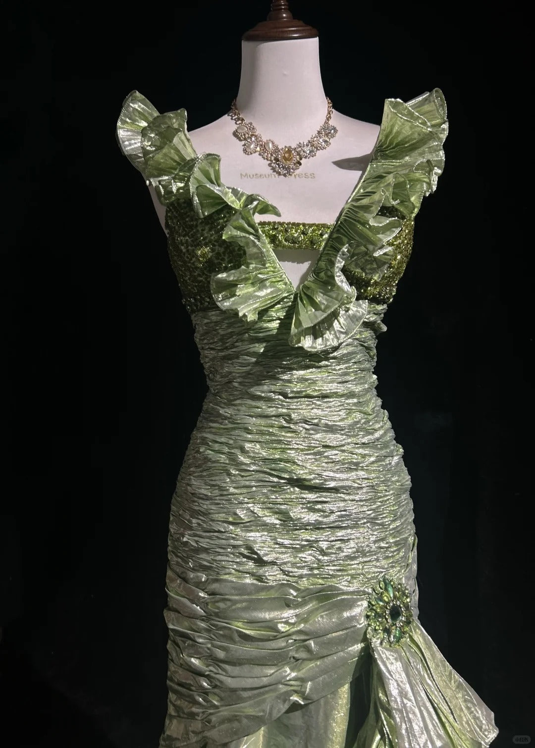 Beauty Rüschen Pailletten Plissee Bodenlangen Ballkleid Abendkleid Galakleid D2163