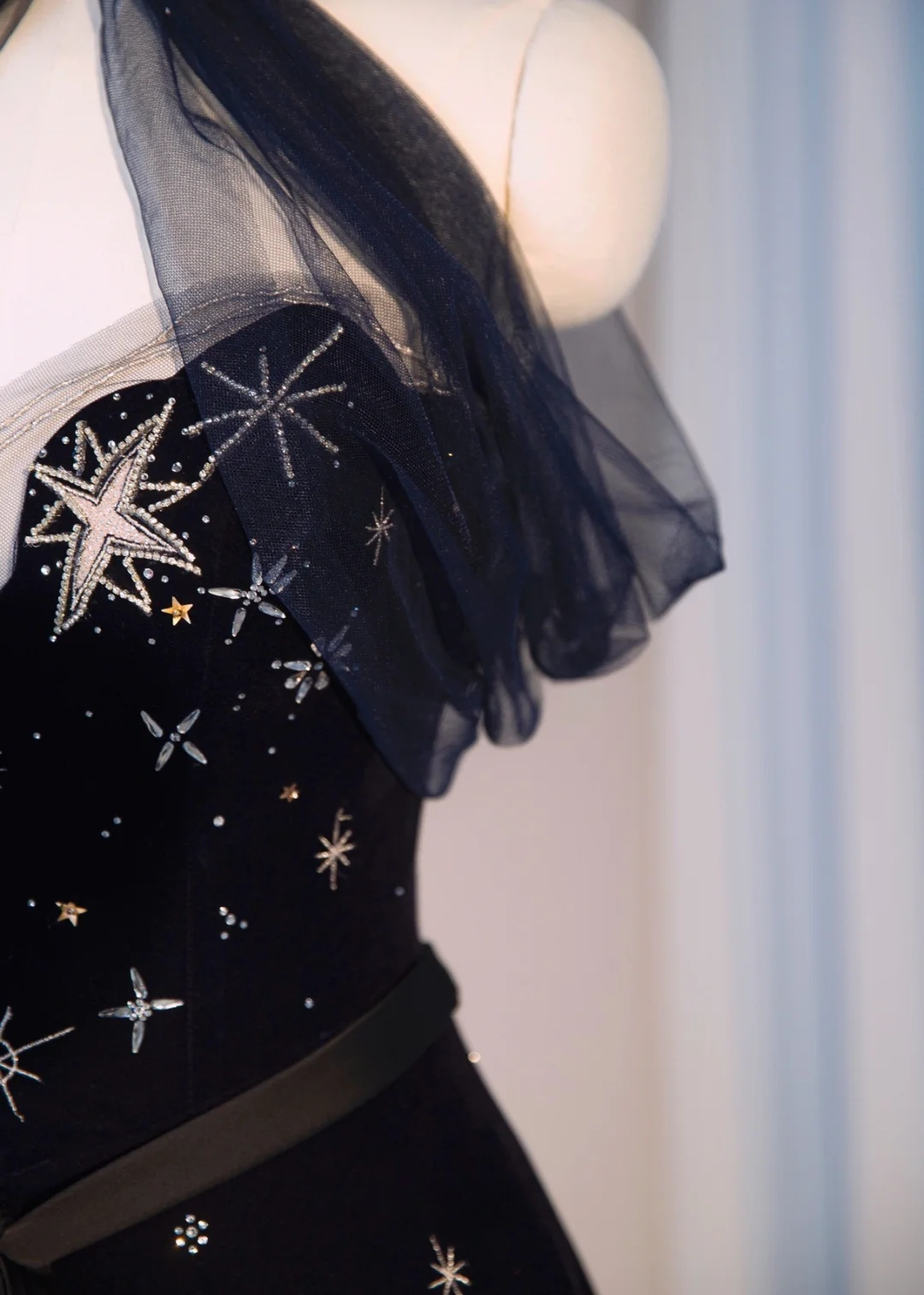 Schwarzes Neckholder-A-Linien-Ballkleid mit schulterfreiem Abschlussballkleid, D1211