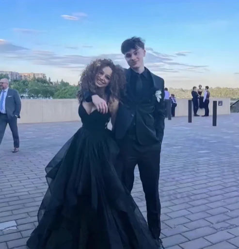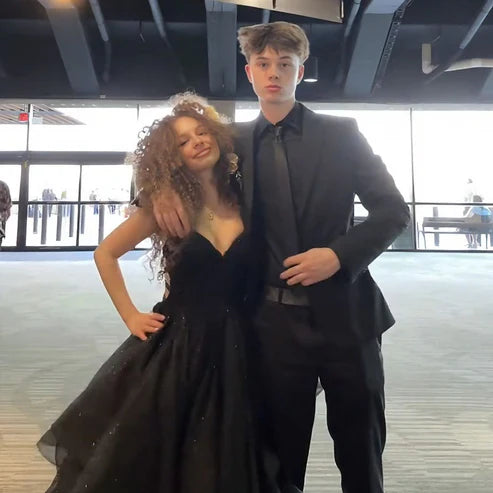 Schwarze Träger A-Linie Rückenfrei Glänzend Langes Partykleid Geburtstagsballkleid, D346