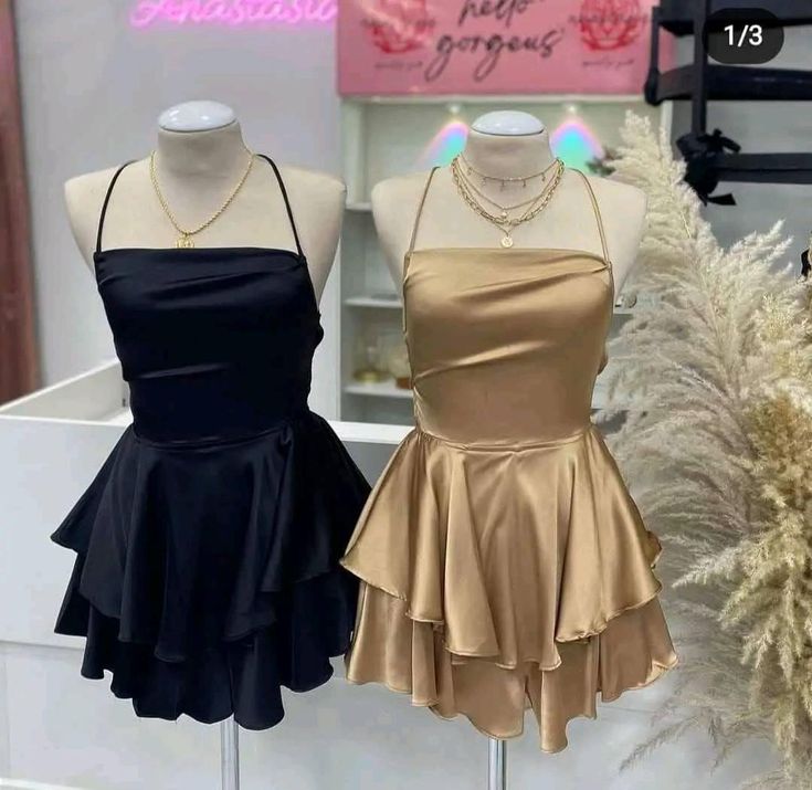 Schwarze Träger A-Linie Satin Schlichtes Homecoming-Kleid Mini Geburtstags-Outfits, D164