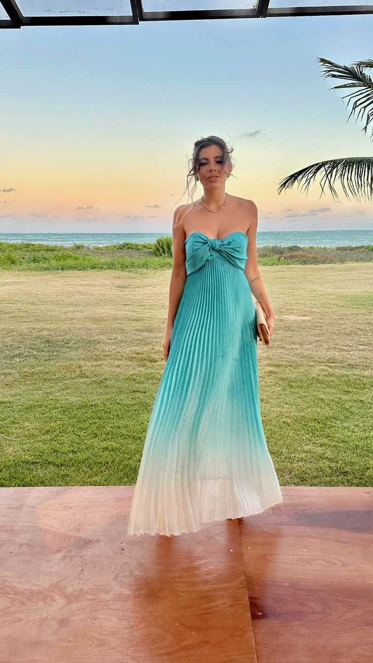 Blaues Ombre-Kleid, trägerlos, A-Linie, lang, Partykleid, Hochzeitsgastkleid, D561