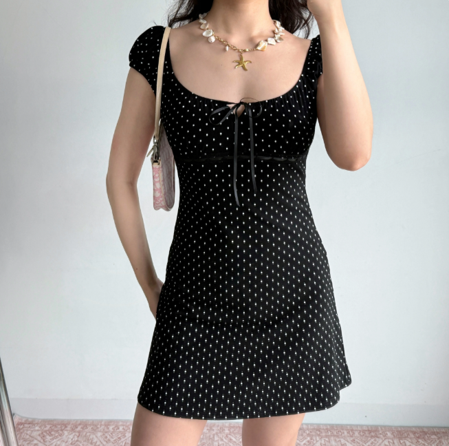 Lässiges A-Linien-Sommerkleid mit Puffärmeln und kurzem Rock für Damen im Teenageralter, D2208