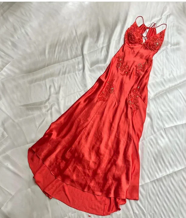 Charmantes Etui-Abendkleid aus Satin mit Spaghettiträgern, D88