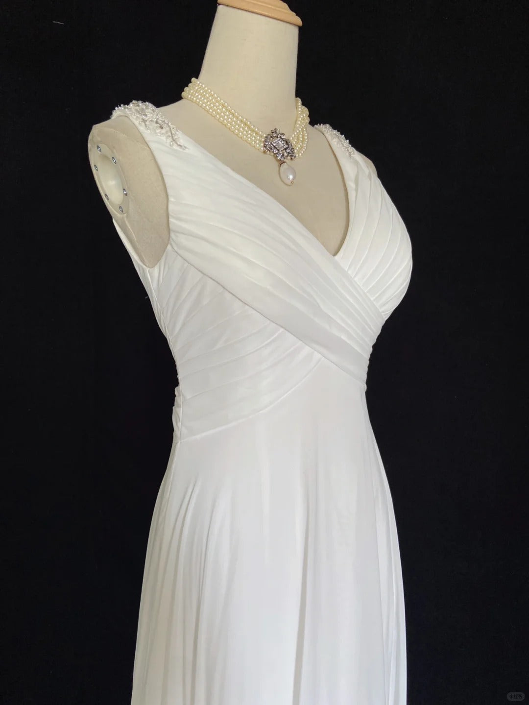 Charmantes Brautkleid V-Ausschnitt Plissee Rückenfrei Brautkleid Galakleid Ballkleid D2313