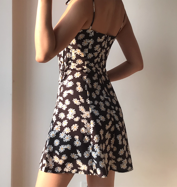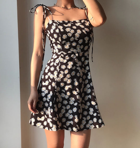 Süße A-Linie Spaghettiträger Blumen Kurzer Rock Frauen Teenager Mädchen Sommerkleid Urlaub Datum Kleid D2106