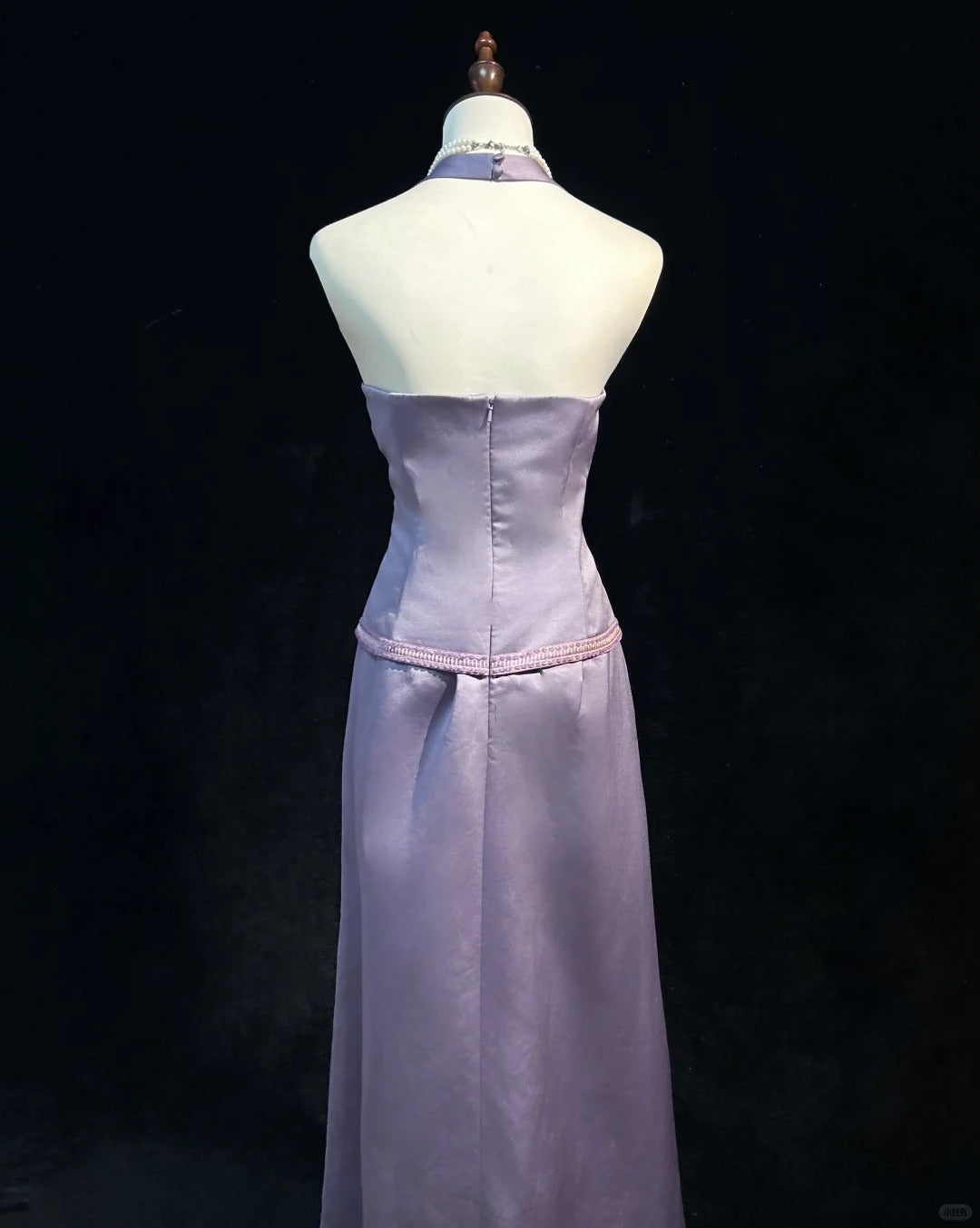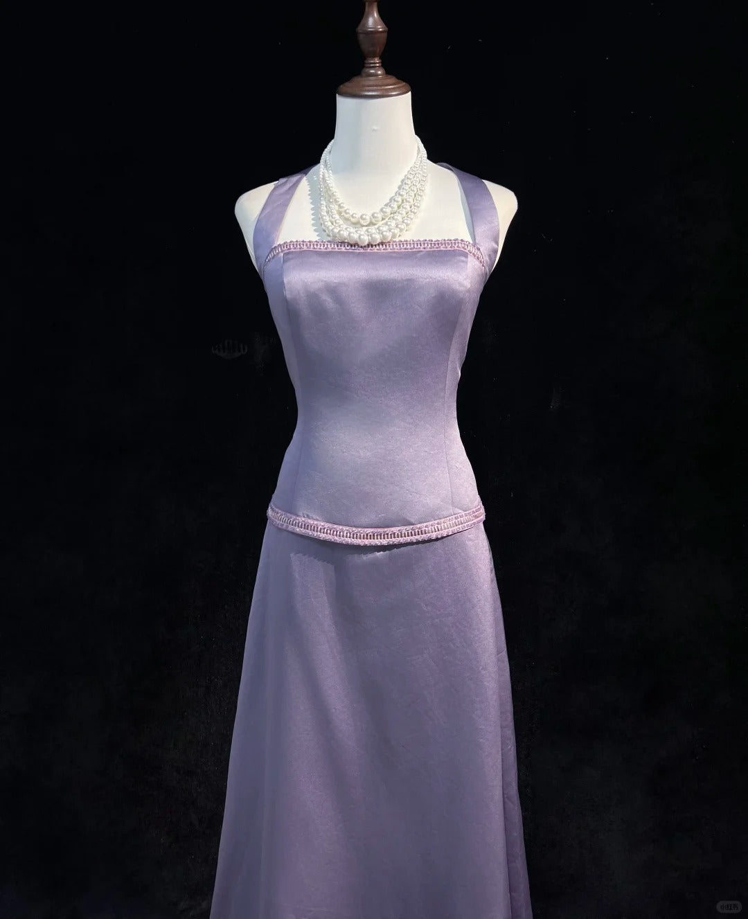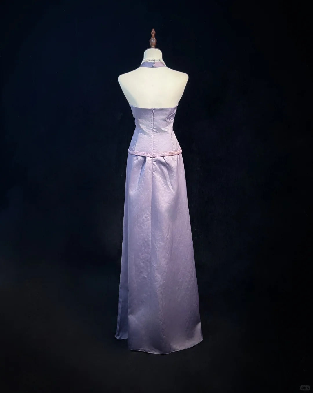 Elegantes A-Linie Neckholder Satin Ballkleid Abendkleid Geburtstagspartykleid D2115