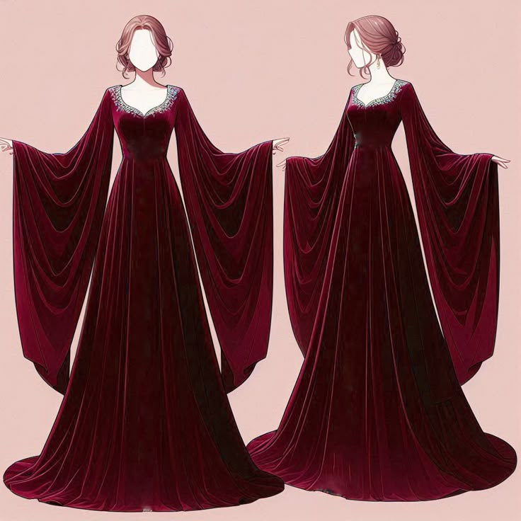 Elegantes, burgunderrotes, langärmliges A-Linien-Abendkleid aus Samt, D934