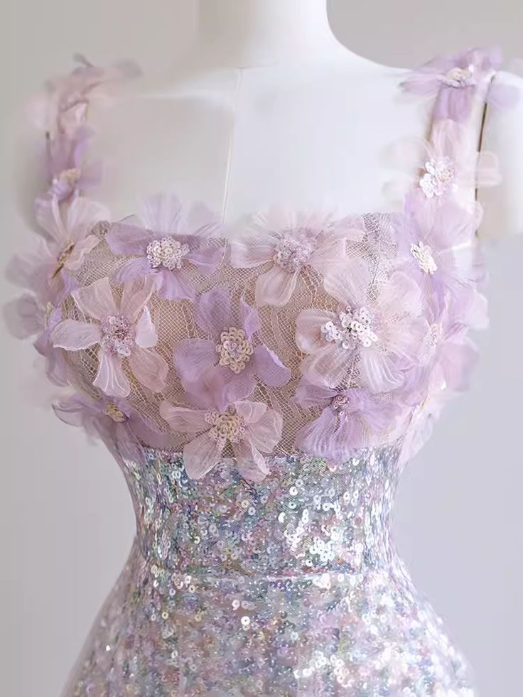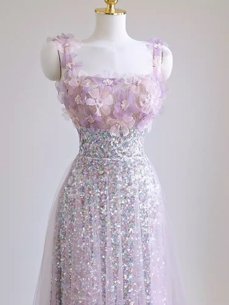 Elegantes Blumen-Pailletten-A-Linien-Kleid, lang, formelles Partykleid, Geburtstags-Outfits MD7388