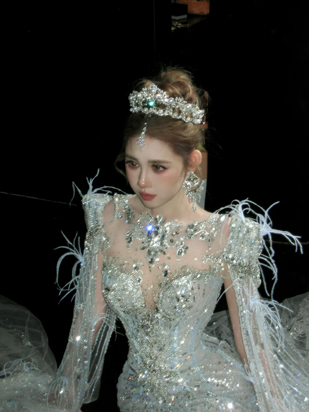 Elegantes glitzerndes silbernes Perlen-Pailletten-Design Meerjungfrau-Brautkleid Ballkleid Abendkleid D1713