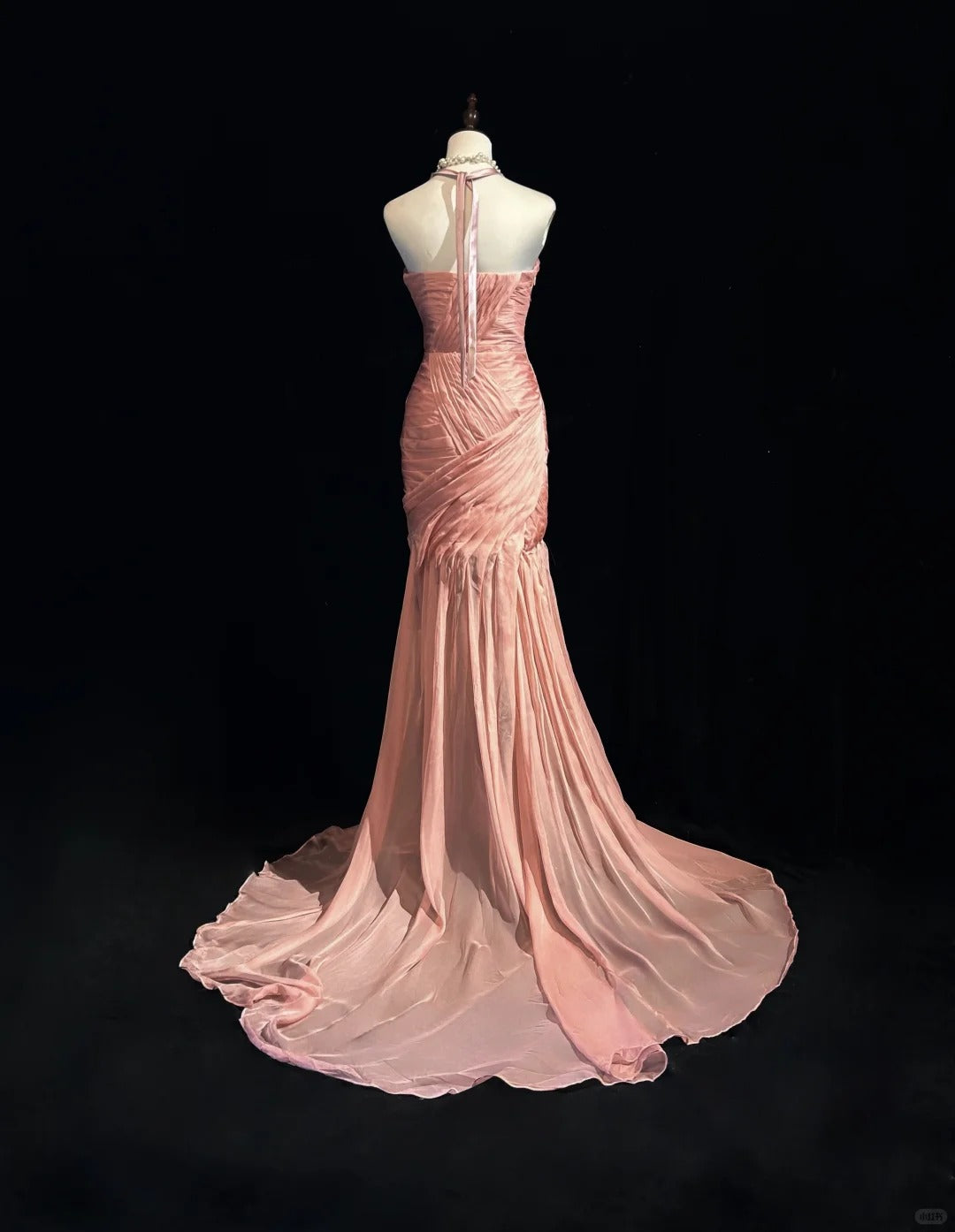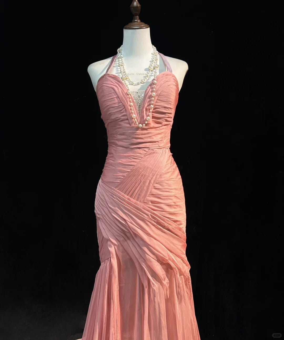 Elegantes Neckholder Plissee Bodenlanges Ballkleid Abendkleid Partykleid D2129