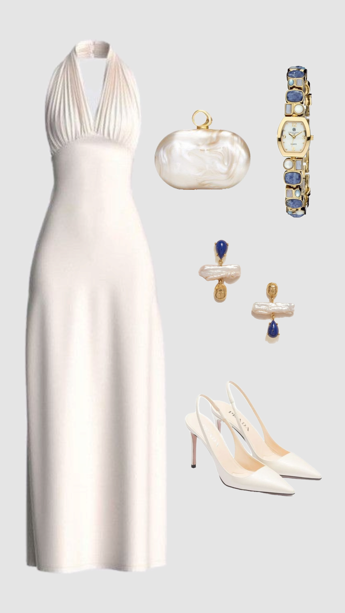 Elegantes, elfenbeinfarbenes Neckholder-Etuikleid, langes Partykleid, formelles Abendkleid, D825