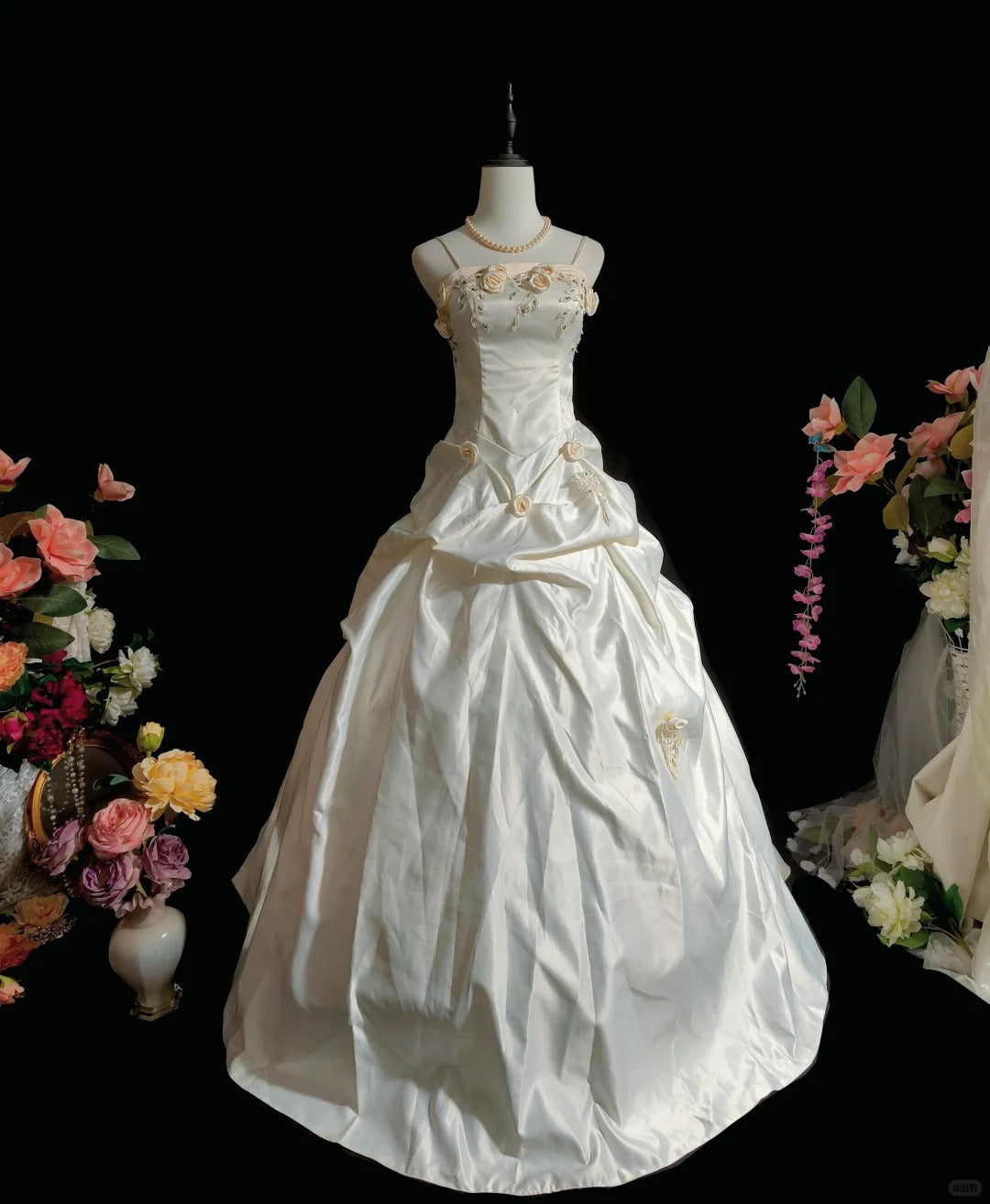 Elegante Spaghettiträger Applikationen Blume Plissee Abendkleid Sweet 16 Kleid Geburtstagsparty Kleid Ballkleid D2072