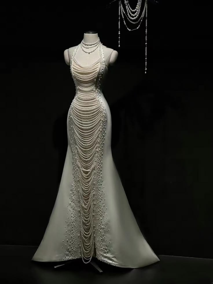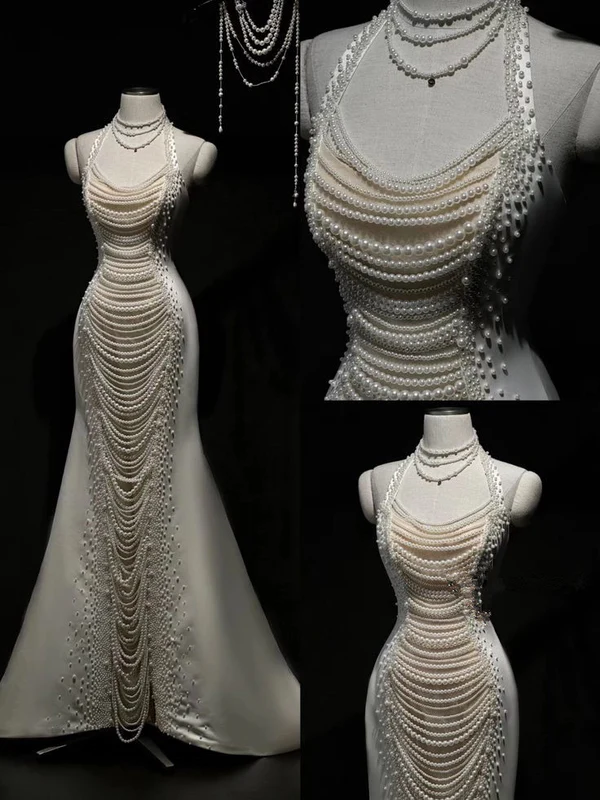 Wunderschöne schulterfreie Meerjungfrau Perlen Schicke Brautkleider Geburtstagsoutfits, D1189