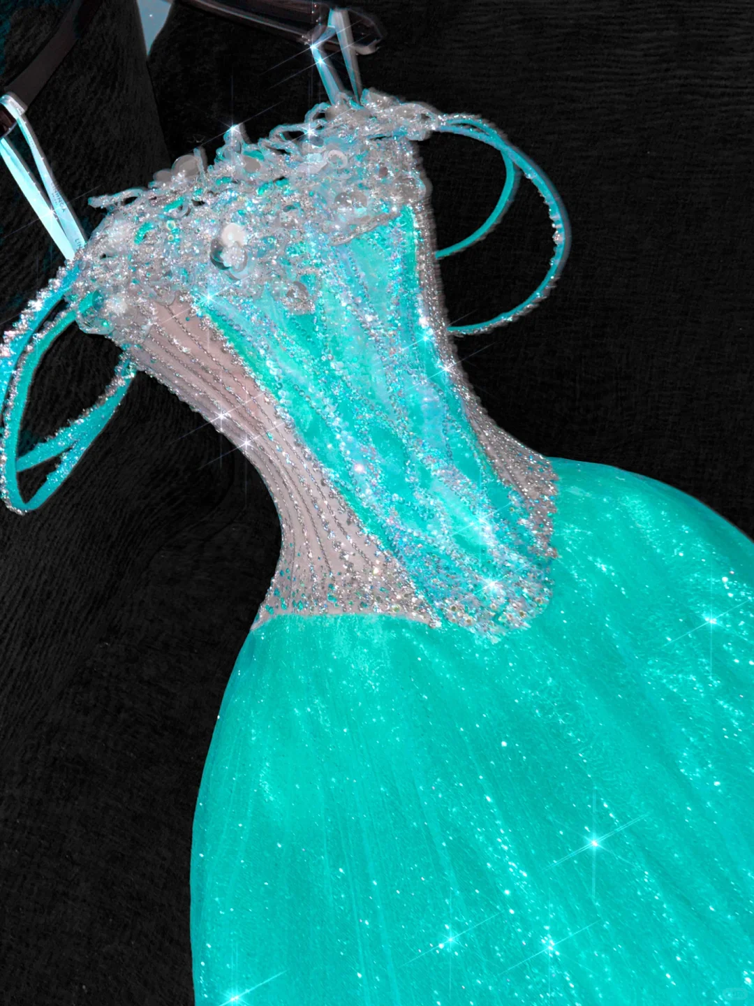 Wunderschönes funkelndes blaugrünes Pailletten-A-Linien-Design Abendkleid Ballkleider D1644