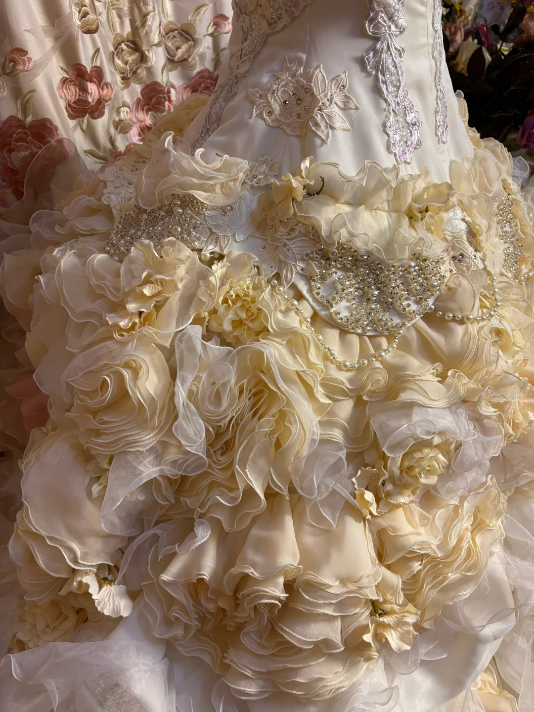Eilbestellung: Innerhalb von 15 Werktagen fügen Sie bitte 30,00 $ hinzu. Diese Kosten werden für den vorherigen Versand und für Näherinnen gedeckt, die gerne zusätzliche Zeit investieren möchten, um dieses Kleid fertigzustellen.