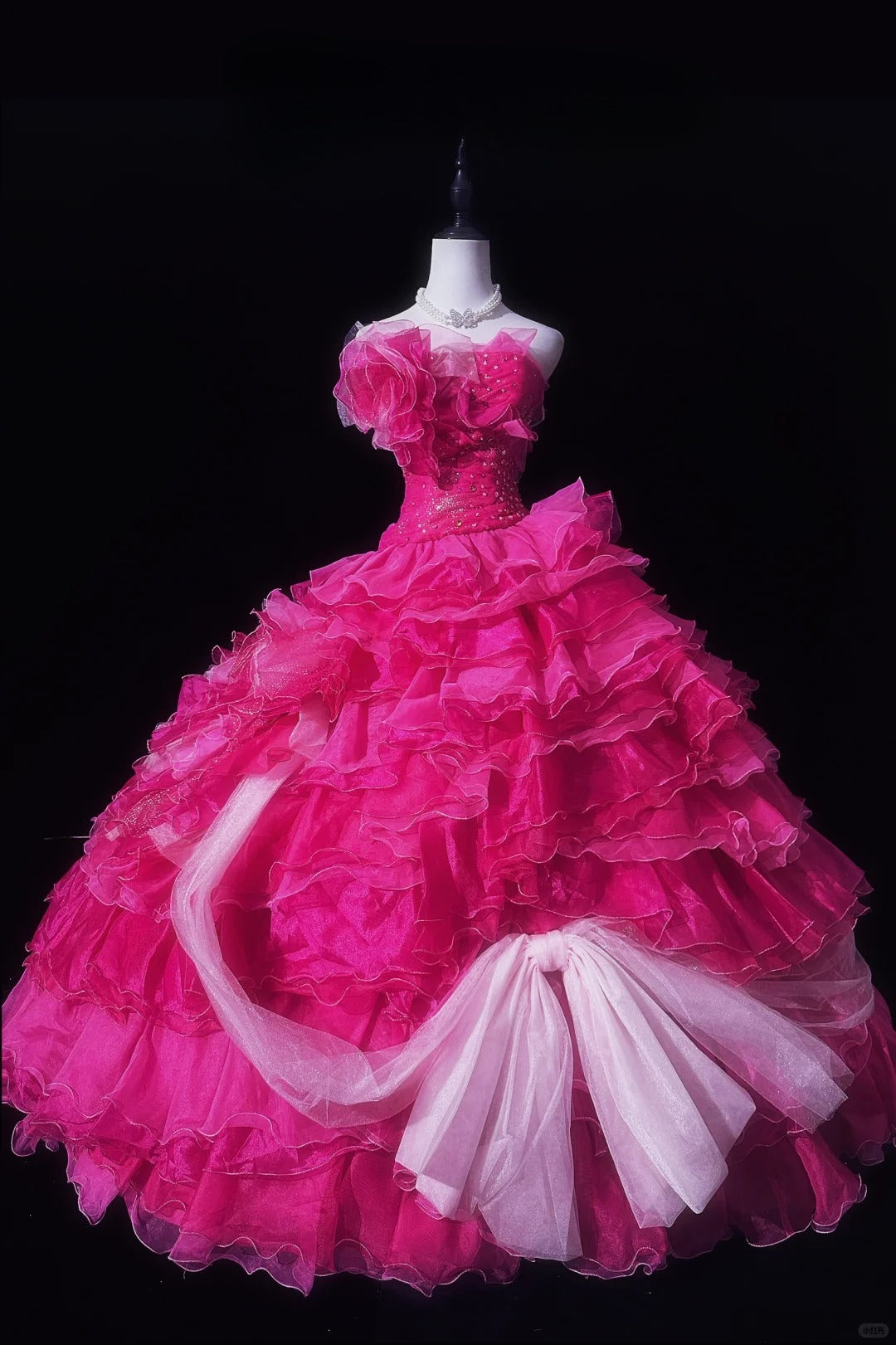 Wunderschönes trägerloses handgefertigtes Ballkleid mit gestuften Rüschen und Rosenkristallen, Geburtstagsparty, Abschlussballkleid, Abendkleid D1801