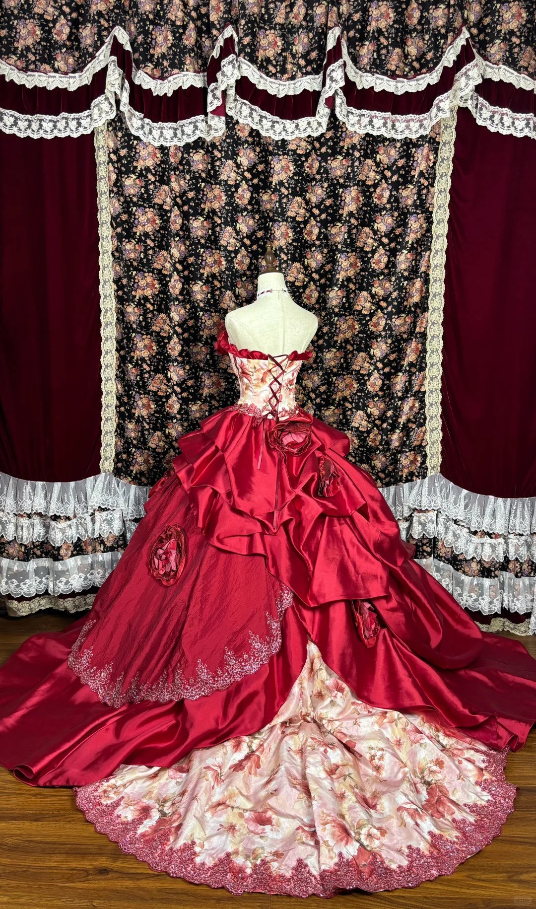 Wunderschöner herzförmiger Ausschnitt mit Blumenmuster und Kristallen, mehrstufiges, plissiertes Ballkleid, Quinceanera-Kleid, Abschlussballkleid, Abendkleid D2079