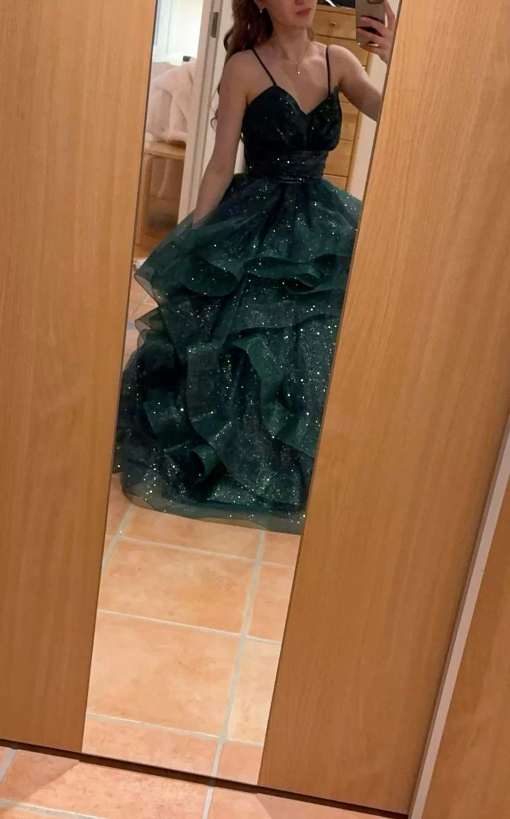 Grünes A-Linien-Ballkleid mit Spaghettiträgern, lang, formelles Abendkleid, D932
