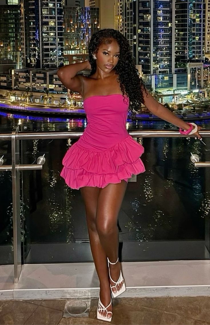 Hot Pink Trägerloses A-Linien-Heimkehrkleid Mini-Geburtstags-Outfits, D111