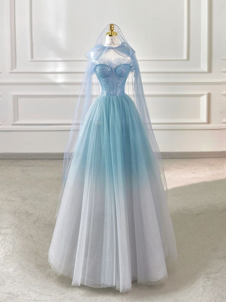 Hellblaues trägerloses A-Linien-Tüll-Partykleid, langes Geburtstags-Outfit, MD7482