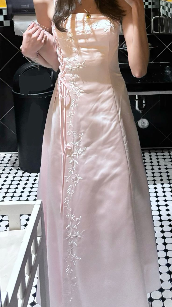 Hellrosa Spaghettiträger A-Linie Vintage Langes Abendkleid, D1056