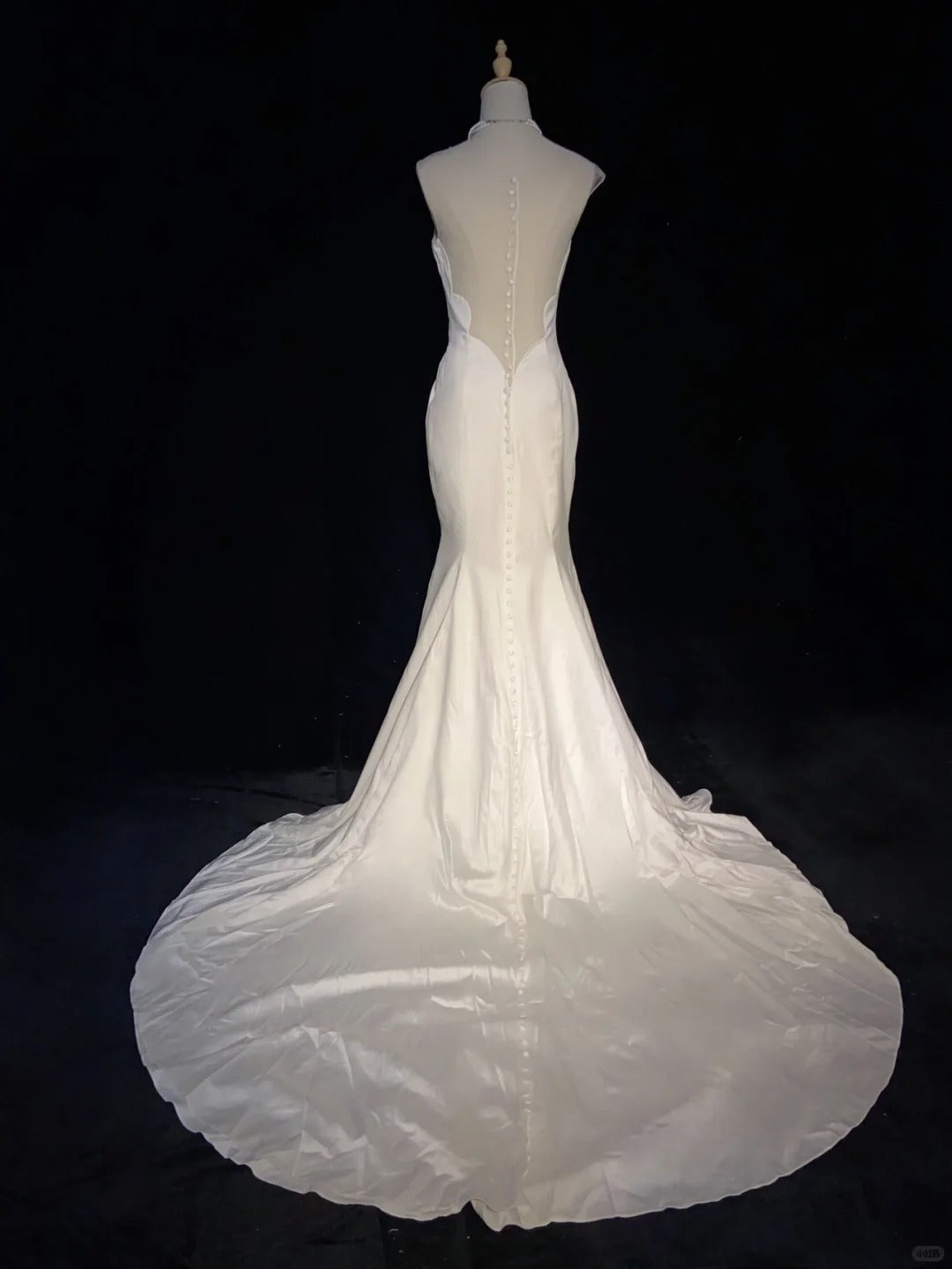 Minimalistisches Hochzeitskleid Weiß Rundhalsausschnitt Rückenfrei Meerjungfrau Ballkleid Galakleid Hochzeitskleid Abendkleid D2354