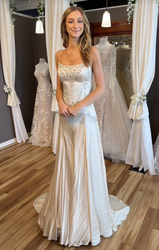 Neue Ankunft Spaghettiträger A-Linie Perlen Langes Brautkleid Brautkleid, D775