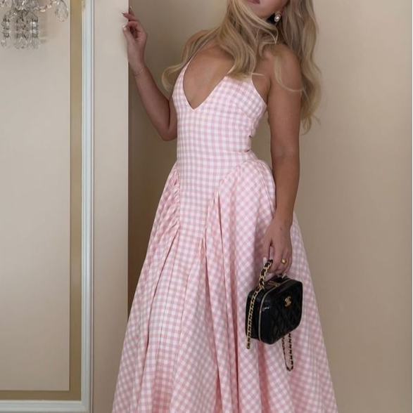 Rosa Neckholder A-Linie Langes Partykleid Schöne Geburtstagsoutfits, D188