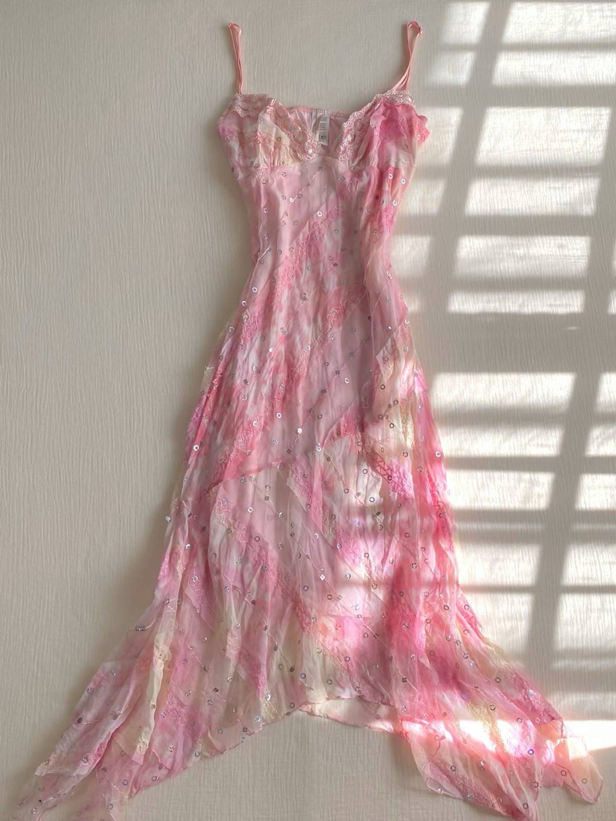 Rosa Träger Pailletten Spitze Etui Chiffon Langes Partykleid Geburtstagskleid, D579