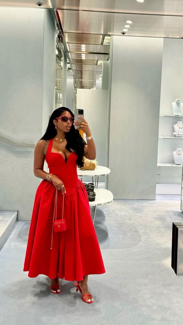 Rotes Neckholder-A-Linien-Partykleid mit Herzausschnitt, langes Hochzeitsgastkleid, D522