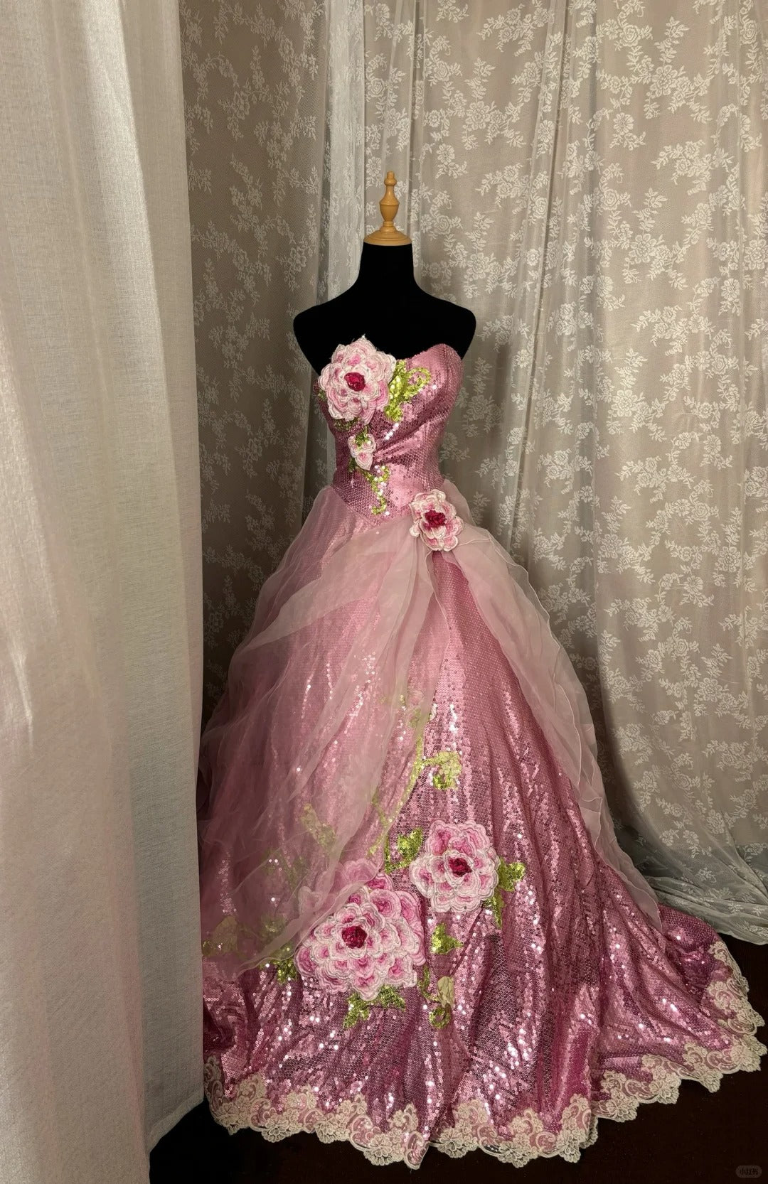 Glänzendes Herzförmiger Ausschnitt Applikationen Pailletten Ballkleid Langes Ballkleid Abendkleid Galakleid D2234
