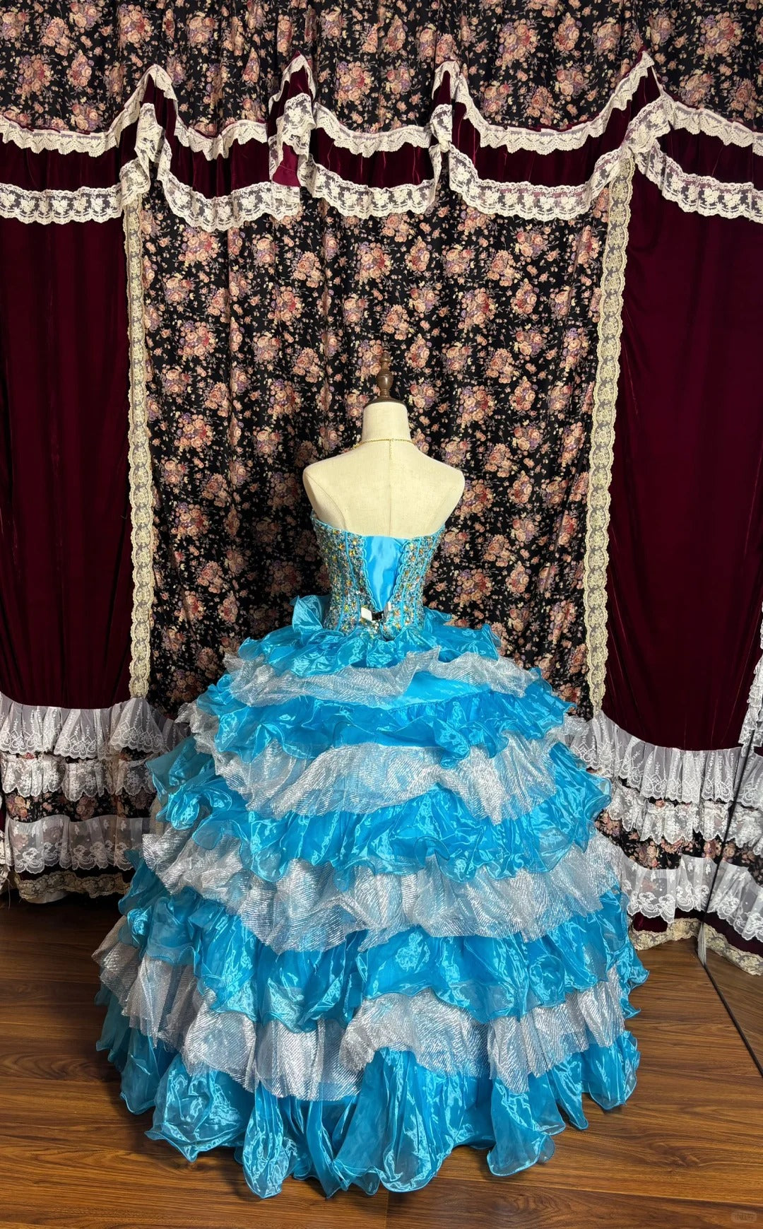 Glänzender herzförmiger Ausschnitt mit Kristallen, gestuftem Volant, Ballkleid, Abendkleid, Geburtstagspartykleid, D2089