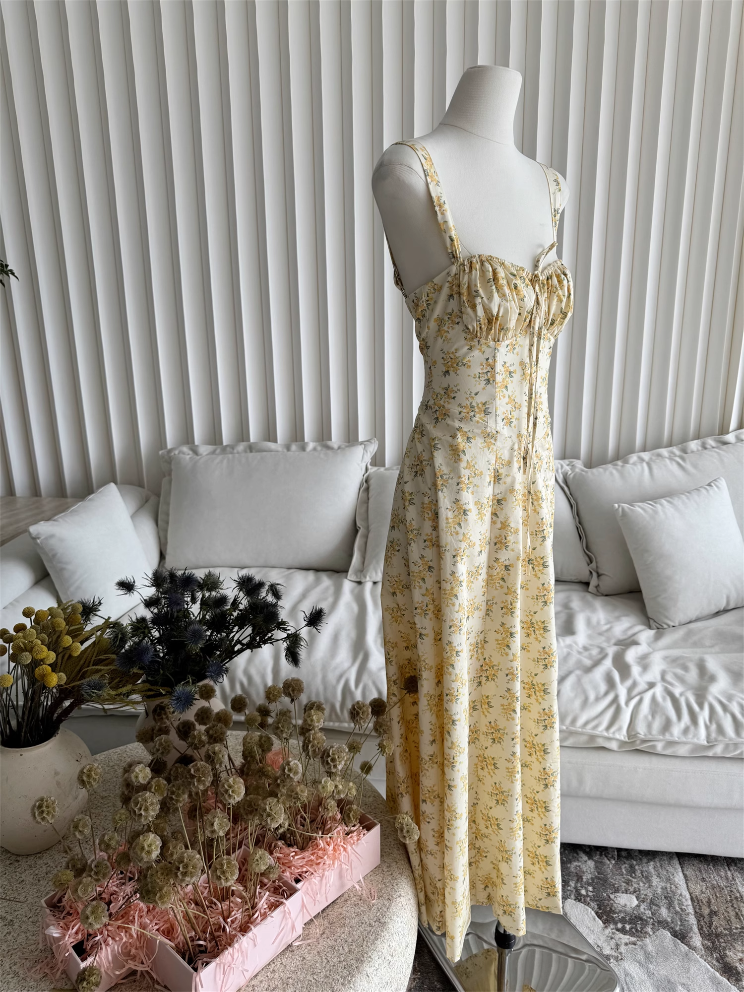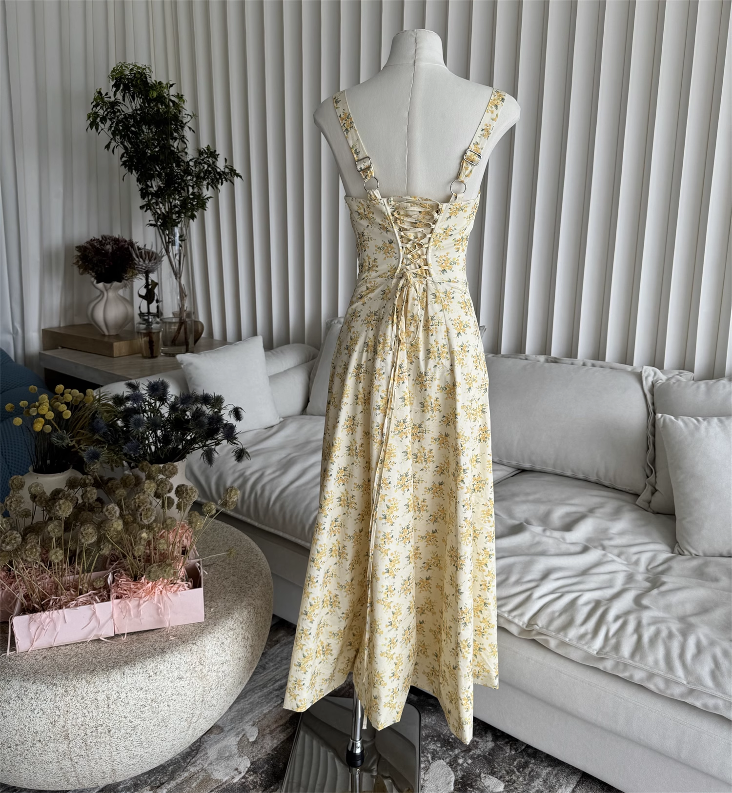 Schlichtes A-Linien-Partykleid mit Spaghettiträgern und Blumenmuster für Damen, D1405