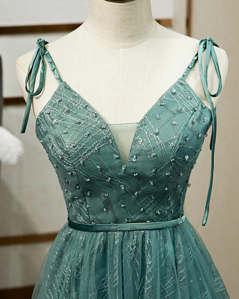 Spaghettiträger Tüll Schlichtes A-Linie Abendkleid Langes Ballkleid M5486