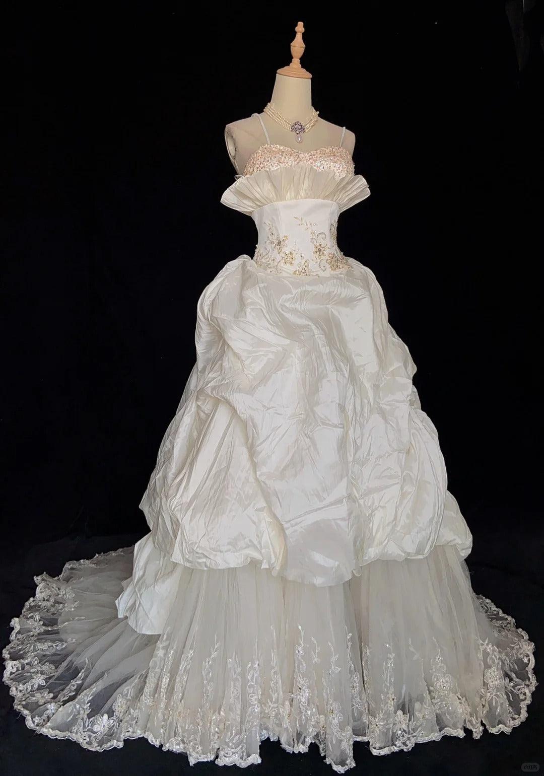 Atemberaubendes Brautkleid Spaghettiträger Plissee Perlenbesatz Ballkleid Ballkleid Abendkleid Brautkleid D2425