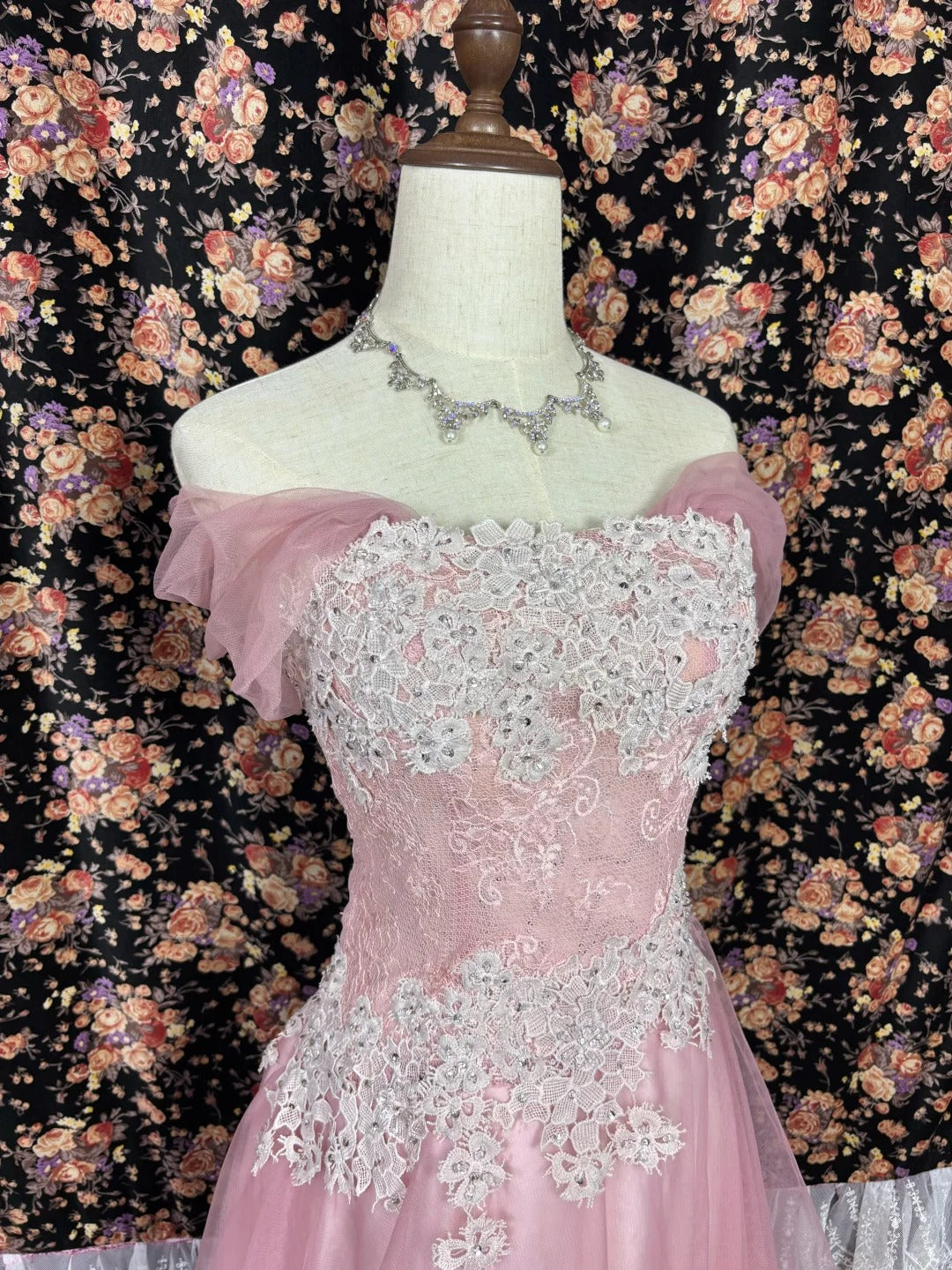 Süßes schulterfreies Tüll-Applikationen bodenlanges Ballkleid Abendkleid Partykleid D2225