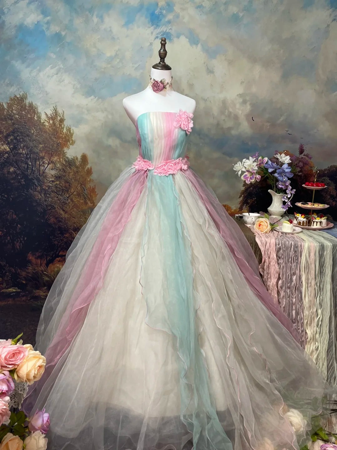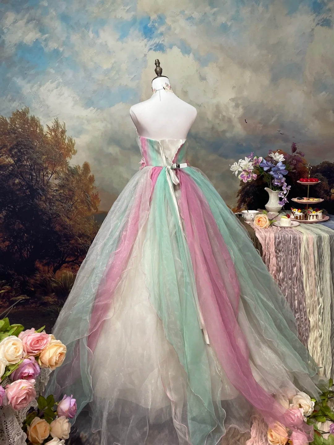 Süßes Ballkleid Trägerloses Rüschen Ballkleid Abendkleid Quinceanera Kleid D2676