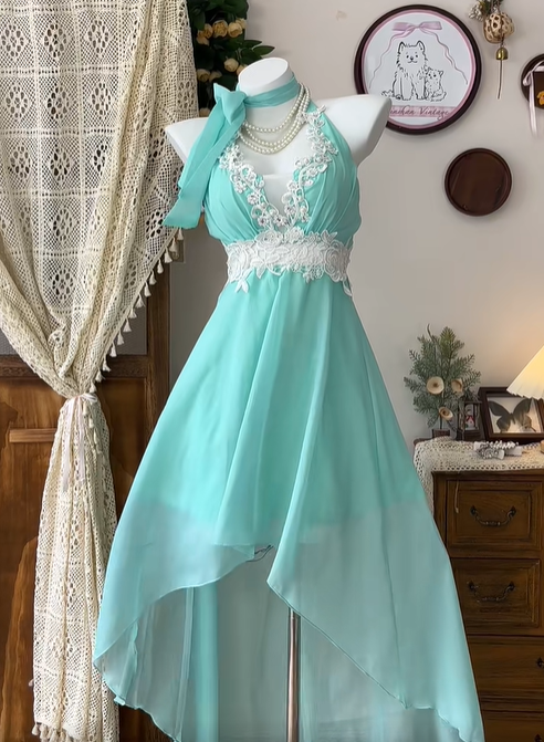 Süßes V-Ausschnitt Neckholder Ärmelloses A-Linien-Kleid Empire Ballkleid Quinceanera-Kleid D1743