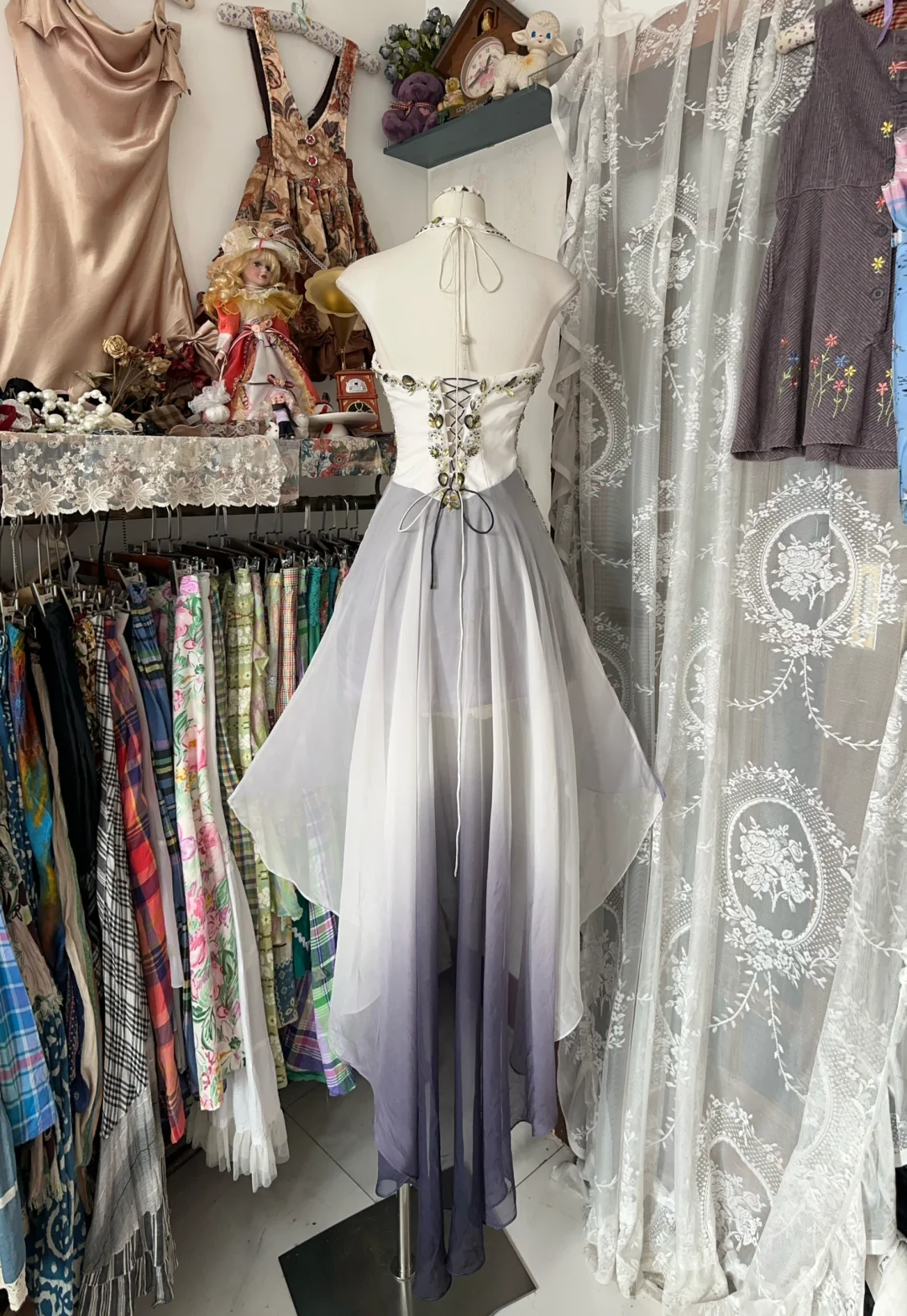 Vintage Ombre Neckholder A-Linie Perlen High Low Partykleid Homecoming Kleid, D337