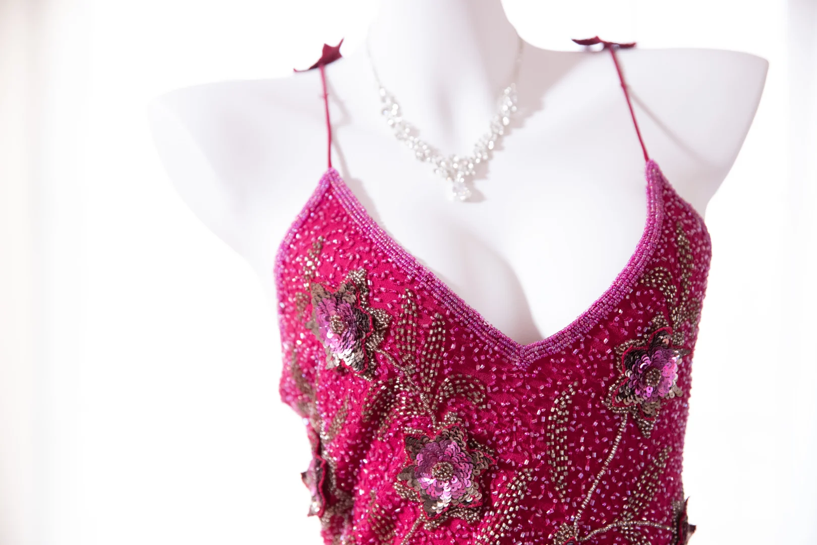 Vintage Glänzende Pailletten Rose Rot Rückenfreies Design A-linie Romantische Chiffon Abendkleid Ballkleid D1506