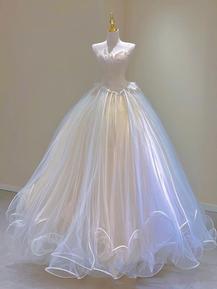 Weißes Herzausschnitt A-Linie Tüll Geburtstagsballkleid Brautkleid Ballkleid, D267