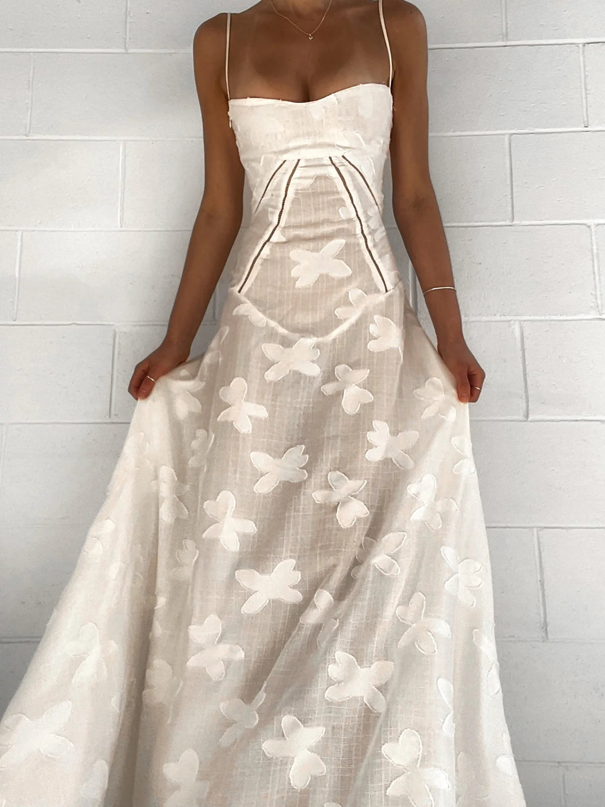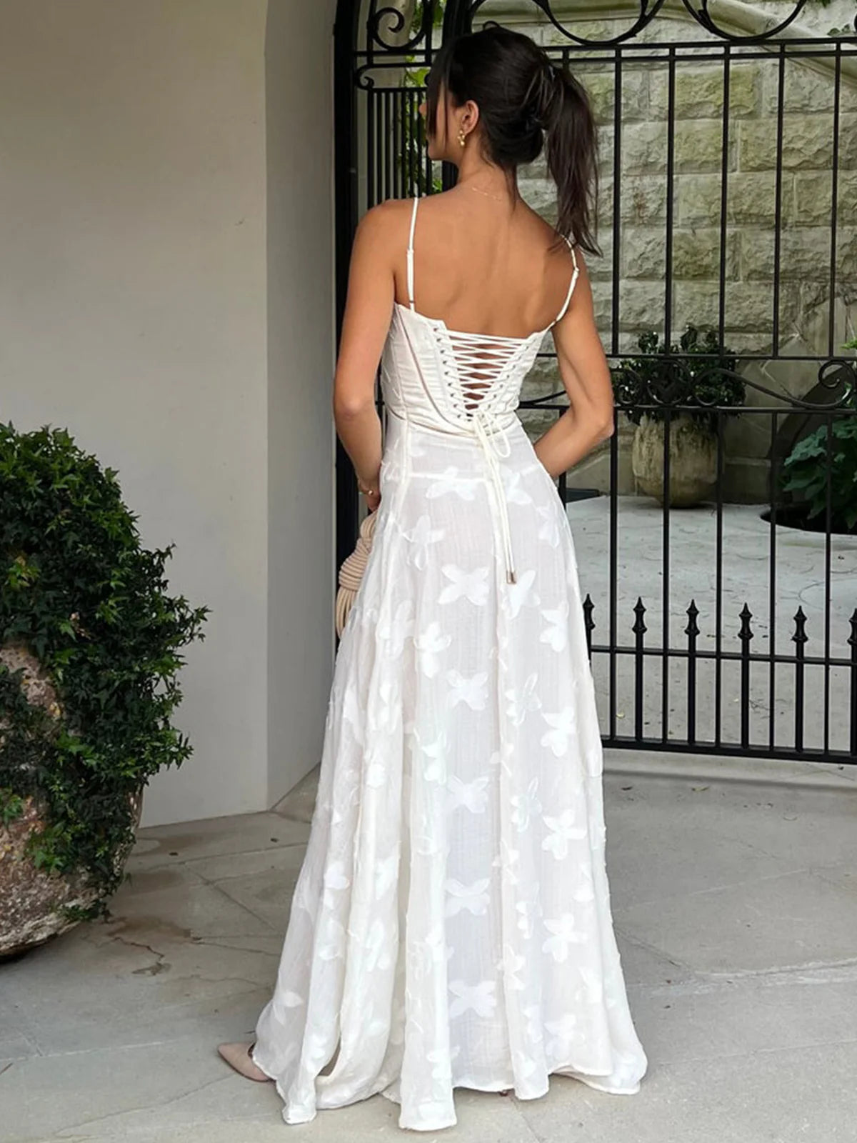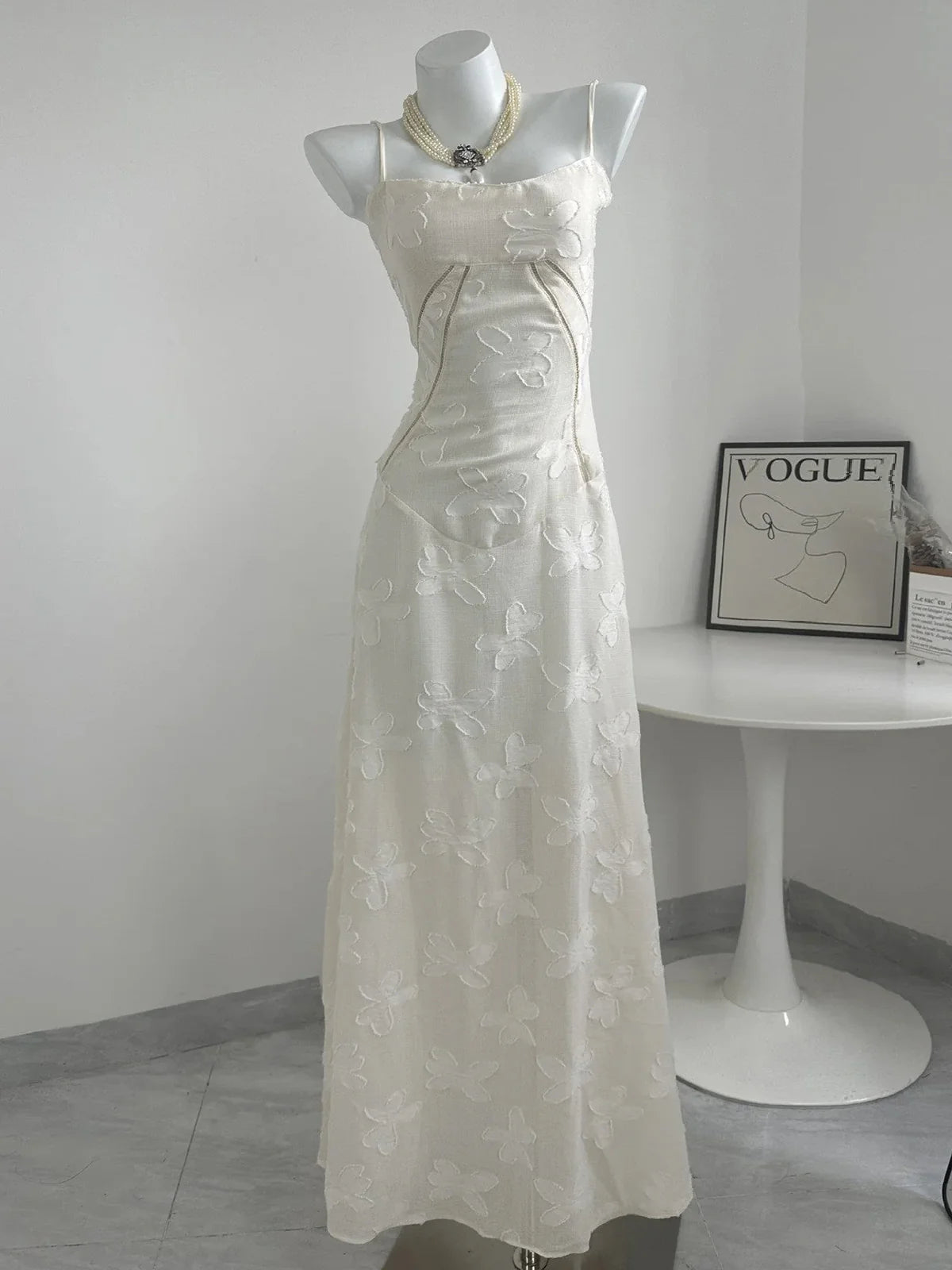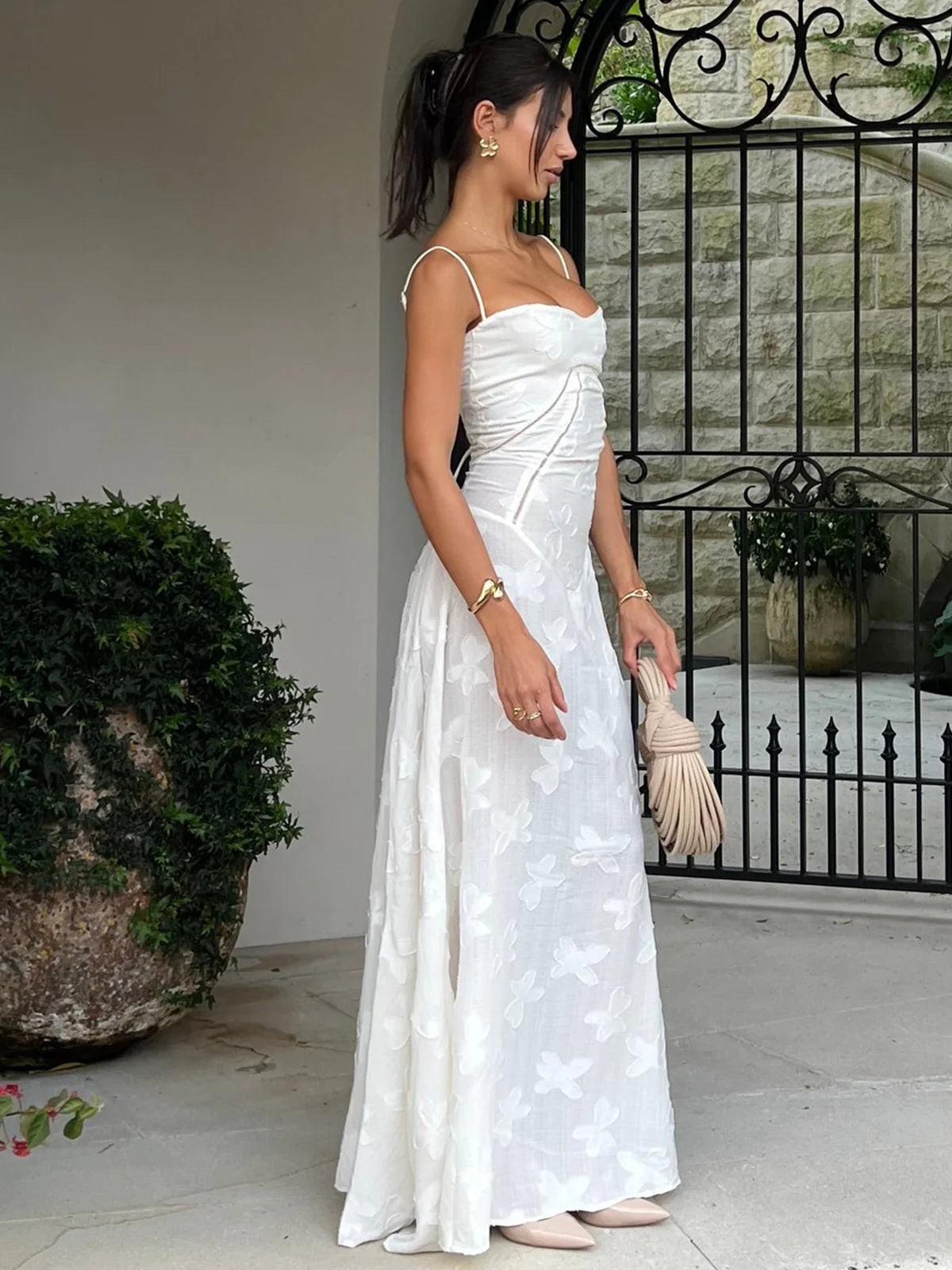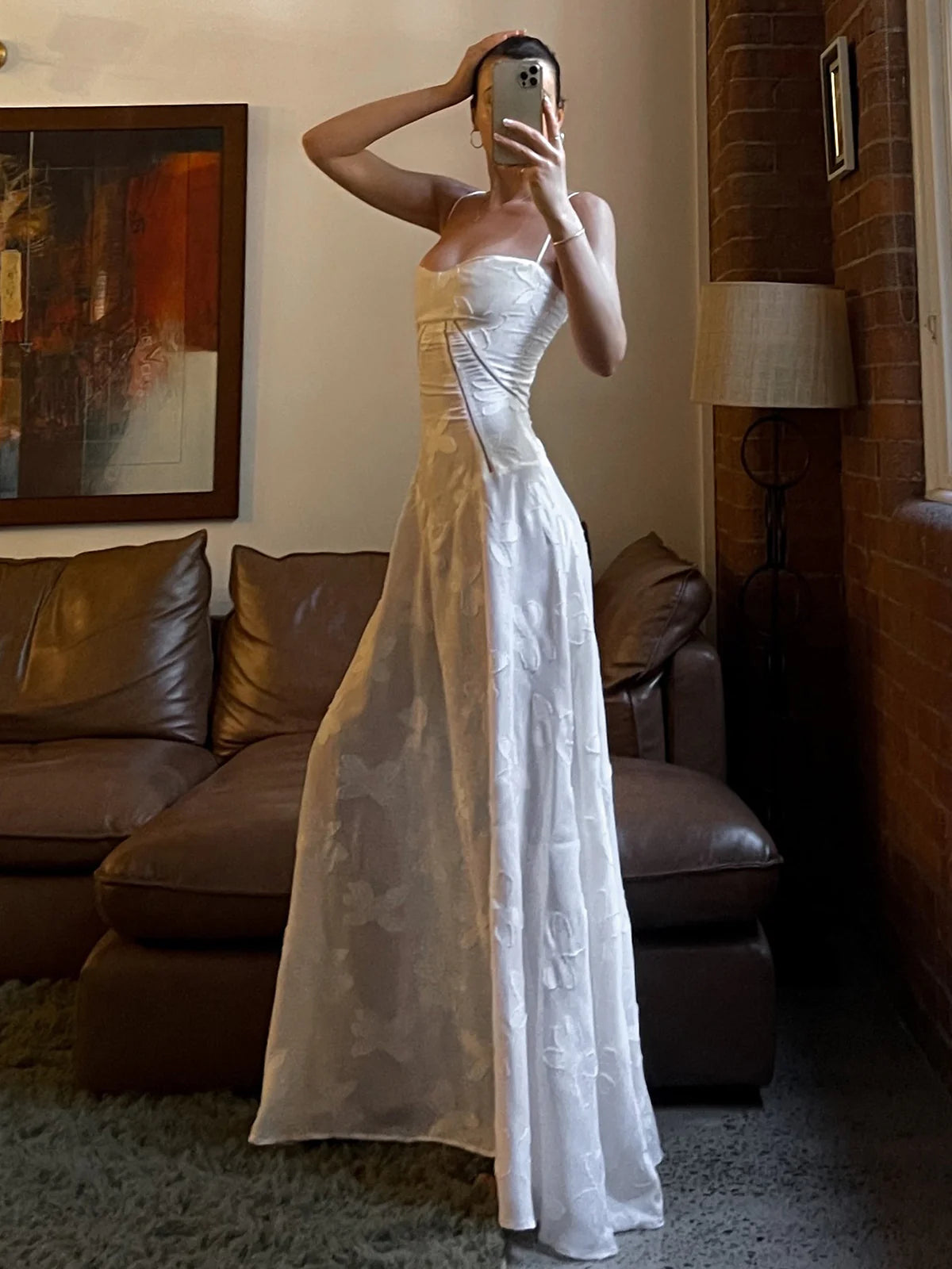 Weiße Träger A-Linie Langes Partykleid Hochzeitsgastkleid Geburtstagsoutfits, D528