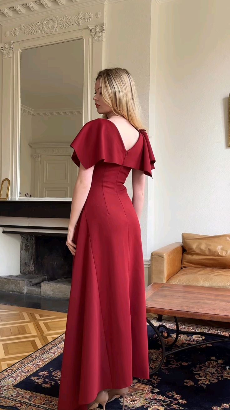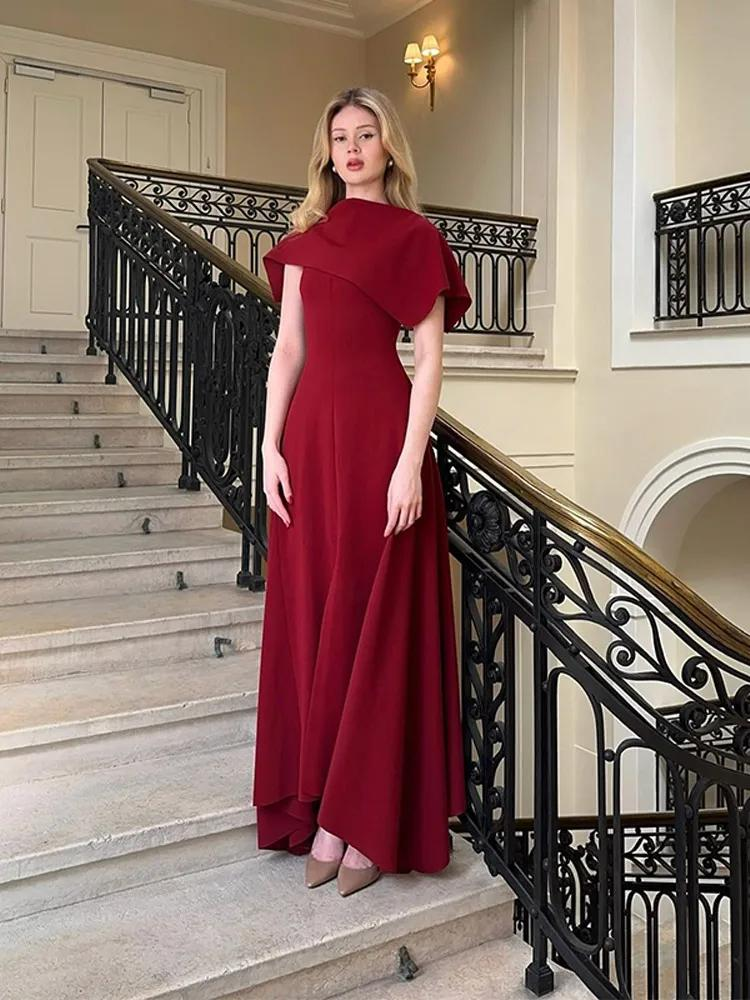 Weinrotes ärmelloses A-Linien-Kleid, lang, für formelle Abendpartys, MD7555