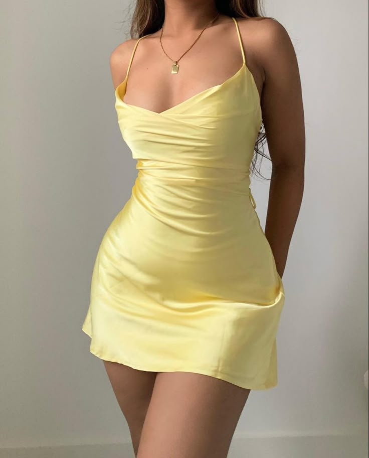 Gelbe Träger Etuikleid Satin Kurze Partykleider Homecoming Kleider, D1247
