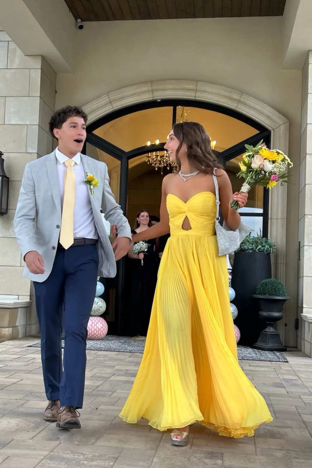 Gelbes Sweetheart A-Linie Langes formelles Ballkleid Einfaches Partykleid, D555