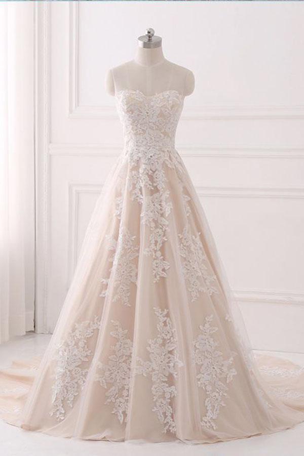 Robe de mariée trapèze en tulle avec décolleté en cœur et appliques, robe de bal bustier M1406