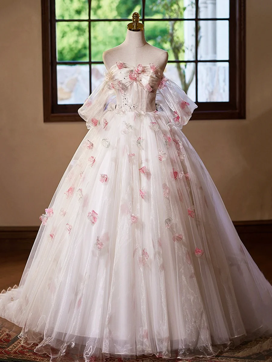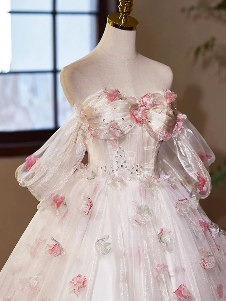 Robe de bal trapèze en tulle fleuri, robe de soirée formelle à épaules dénudées MD7199