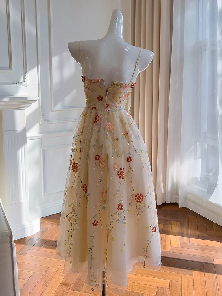 Robe de bal trapèze en tulle à sequins rose champagne, robe de soirée champagne MD7265