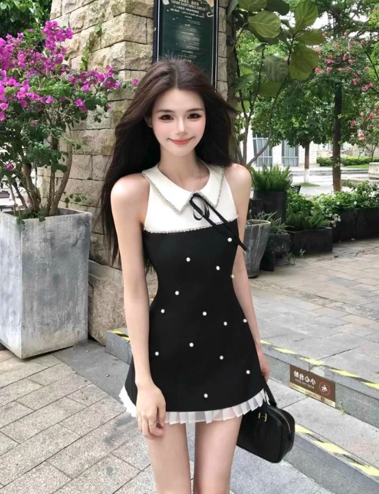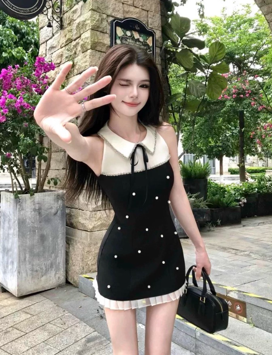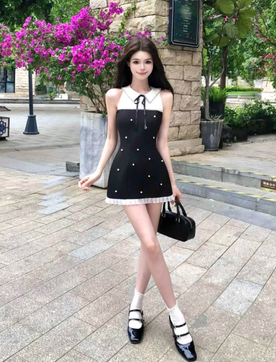 Robe trapèze à lacets et perles, ourlet plissé, tenue de vacances, bord de mer, jupe courte d'été pour femme, D1947